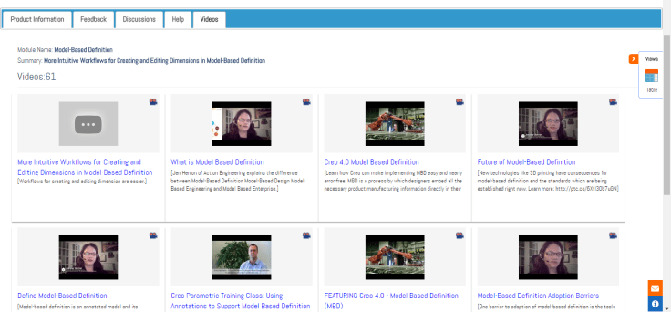 The picture above shows a dashboard view of all enhancements in Creo Parametric 4.0 and the pic below shows contextual access to Videos, Tutorials, Discussions, Help Articles from over 40 different sources for an enhancement.