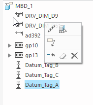 Annotation mini toolbars are also available when you select annotations in the Model Tree or Detail Tree.
