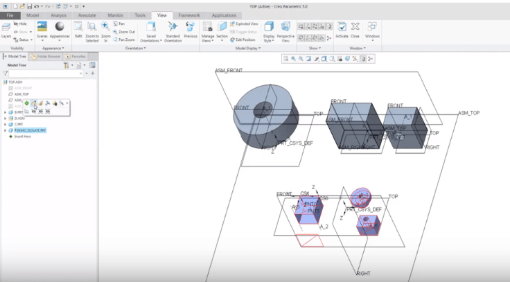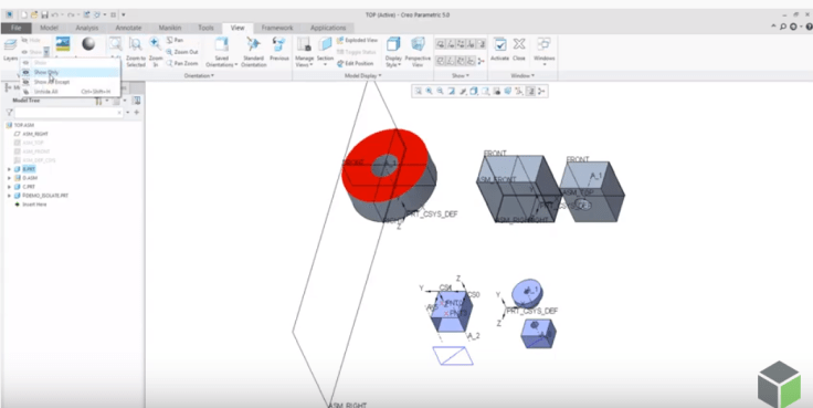 PTC has improved the control of visibility by object type in Part and Assembly modes by adding 2 commands – Show All or Show All Except