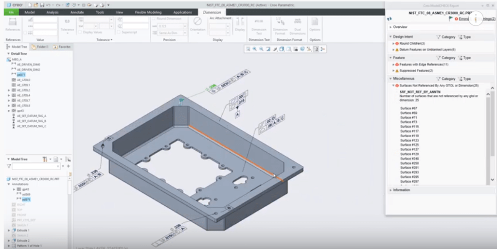 With Creo 6.0, PTC has enhanced ModelCheck to include additional checks for tolerances, annotations, features, and combined states. For example –