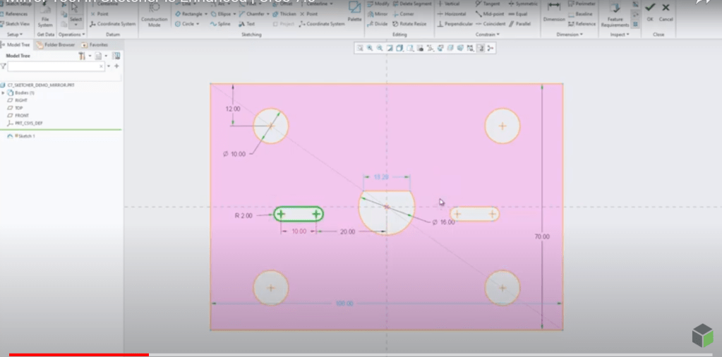 To learn more, go to Mirror Tool in Sketcher Is Enhanced (ptc.com)