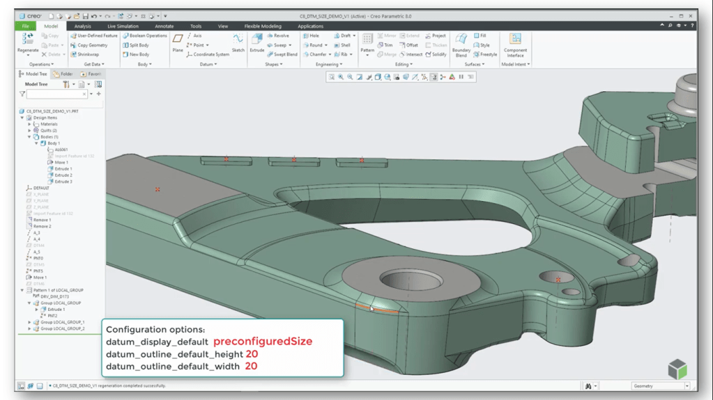 Previously, the datum planes with large sizes cluttered the graphical model presentation in Creo, and you had to manually adjust their sizes.