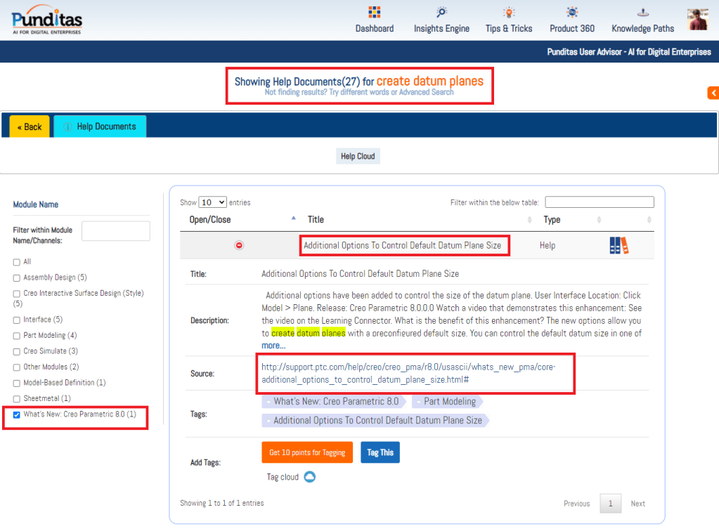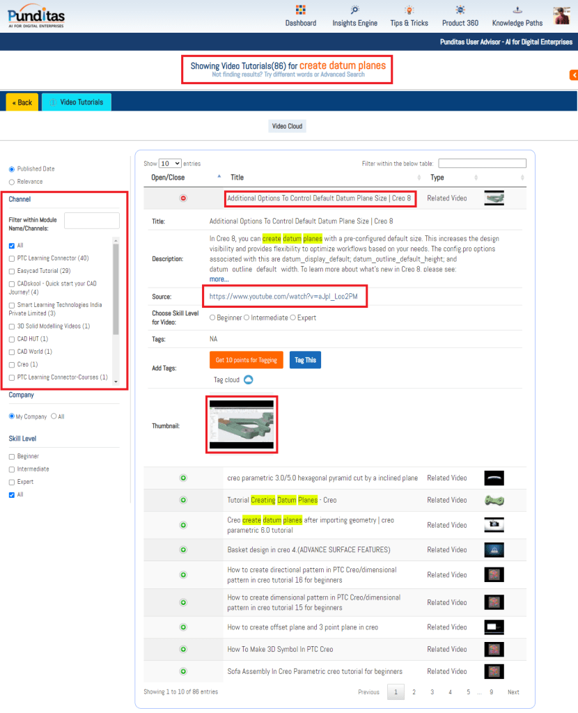Punditas AI Advisor provides real-time guidance as you work in the Creo environment. Information on “how to use” a feature in Creo or best practices for working with Creo are presented within context, removing the need to guess or search for such information. Punditas AI driven content helps you leverage Creo to create your designs faster and with confidence. For example searching for “weld dashboard” in Punditas AI displays the following results –
