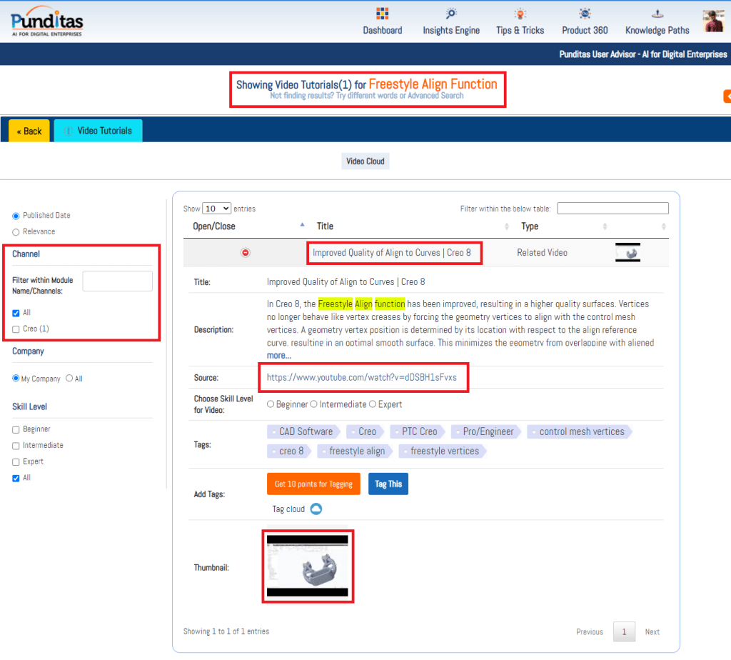 Punditas AI Advisor provides real-time guidance as you work in the Creo environment. Information on “how to use” a feature in Creo or best practices for working with Creo are presented within context, removing the need to guess or search for such information. Punditas AI driven content helps you leverage Creo to create your designs faster and with confidence. For example searching for “weld dashboard” in Punditas AI displays the following results –