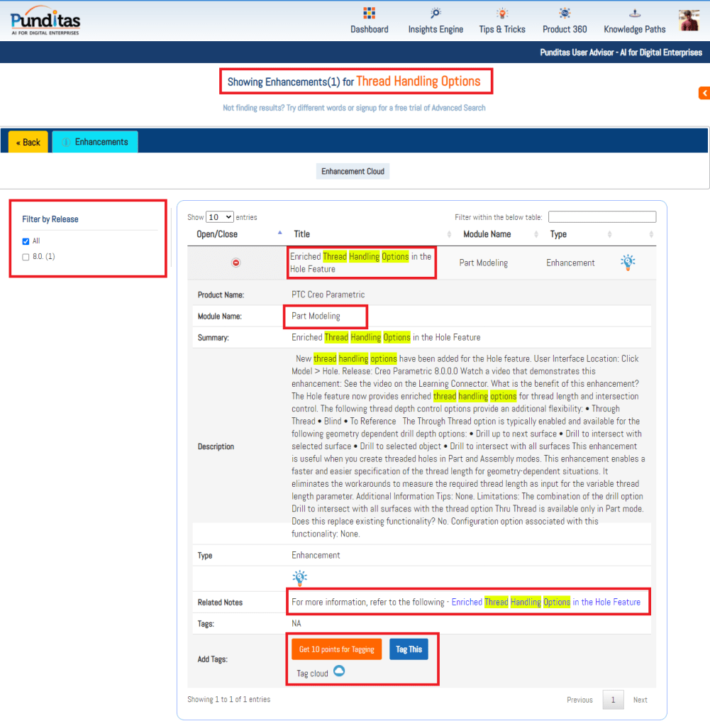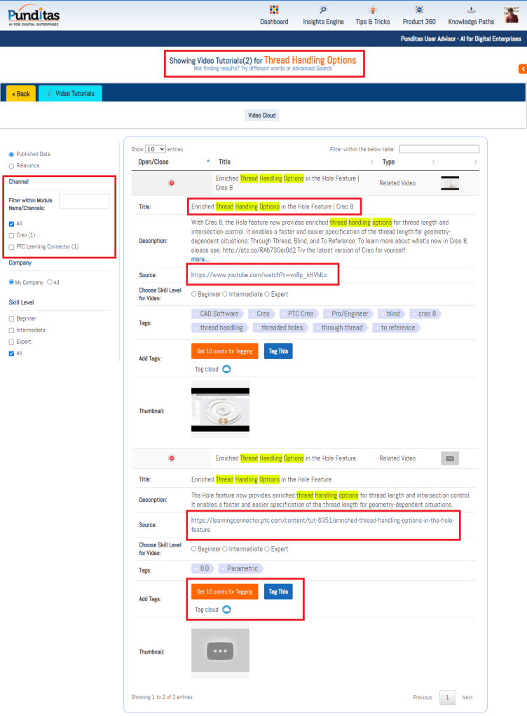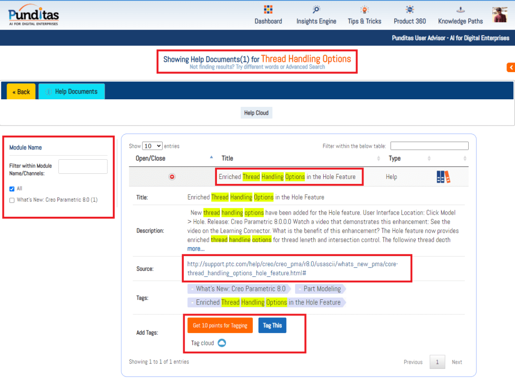 Punditas AI Advisor provides real-time guidance as you work in the Creo environment. Information on “how to use” a feature in Creo or best practices for working with Creo are presented within context, removing the need to guess or search for such information. Punditas AI driven content helps you leverage Creo to create your designs faster and with confidence. For example searching for “weld dashboard” in Punditas AI displays the following results –