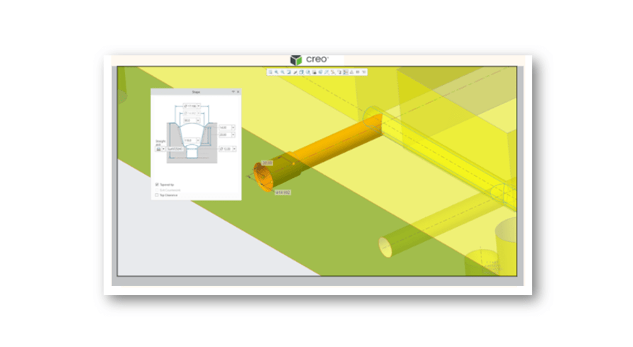 The Hole feature option added for NPT, NPTF, and ISO-7 standard holes in Creo allows you to create a straight drilled hole in combination with the tapped, tapered hole section.