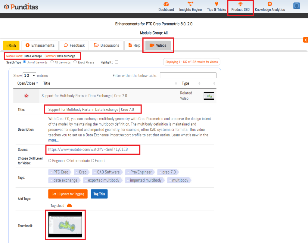 Punditas AI Advisor also offers Video Tutorials for every enhancement to help Users learn how to use the feature in Creo Parametric software. The image below shows the related videos for “Data Exchange” that has been updated in Creo 8.0.2.0. These Videos are extracted and curated by Punditas AI engine from 10’s of repositories including PTC’s Learning Connector, YouTube, Vimeo, etc.