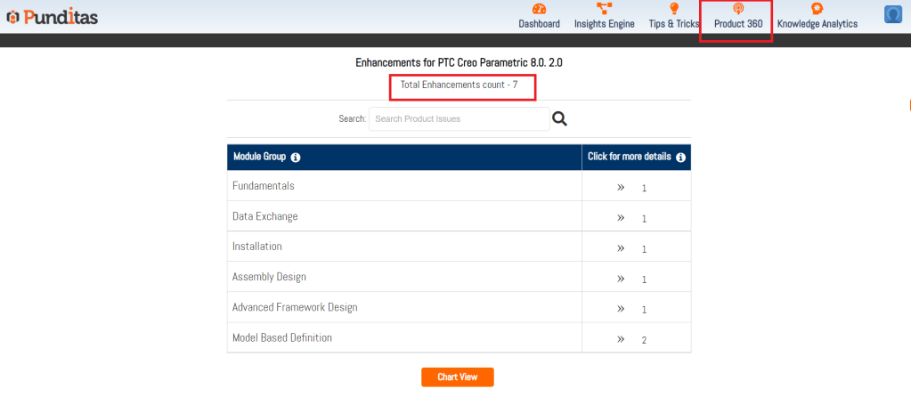 PTC released Creo 8.0.2.0 recently. Punditas AI Advisor now supports this latest version of Creo 8.0.2.0 . Punditas AI allows users to learn more about “How”, What” and “Why” of these enhancements through Product 360 module. The picture below shows the Module groups and the corresponding enhancements added within each group. To try this out, please signup for a FREE trial at Punditas AI