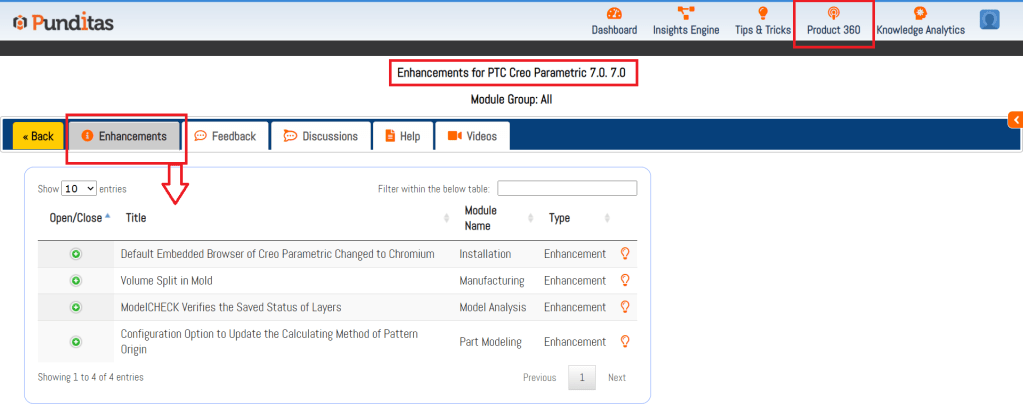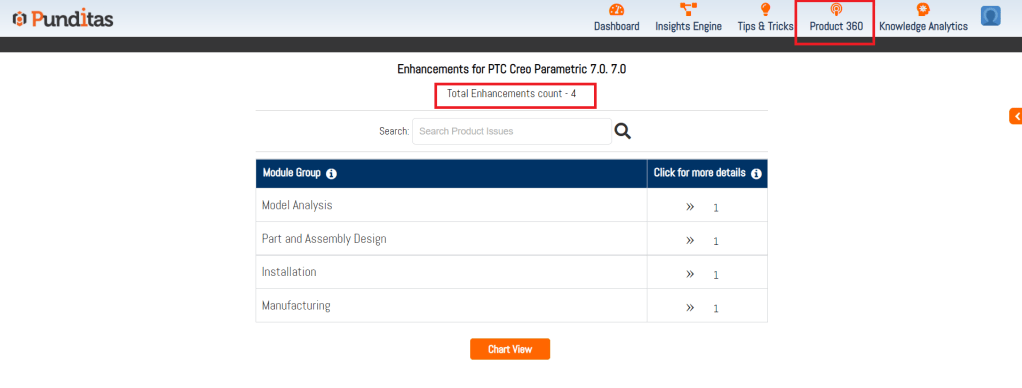 PTC released Creo 7.0.7.0 recently. Punditas AI Advisor now supports this latest version of Creo 7.0.7.0 . Punditas AI allows users to learn more about “How”, What” and “Why” of these enhancements through Product 360 module. The picture below shows the Module groups and the corresponding enhancements added within each group. To try this out, please signup for a FREE trial at Punditas AI
