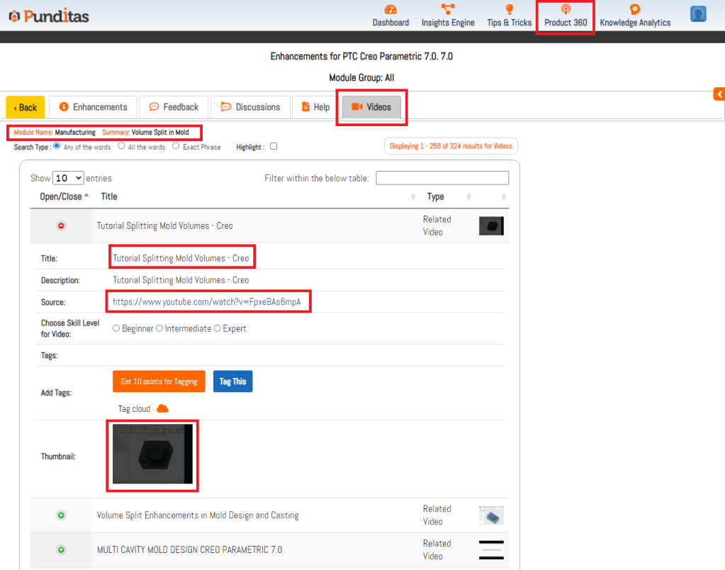 Punditas AI Advisor also offers Video Tutorials for every enhancement to help Users learn how to use the feature in Creo Parametric software. The image below shows the related videos for “Manufacturing” that has been updated in Creo 7.0.7.0 These Videos are extracted and curated by Punditas AI engine from 10’s of repositories including PTC’s Learning Connector, YouTube, Vimeo, etc.