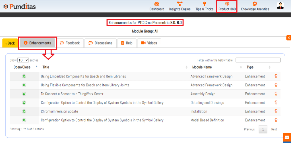PTC released Creo 8.0.6.0 recently. Punditas AI Advisor now supports this latest version of Creo 8.0.6.0. Punditas AI allows users to learn more about “How”, What” and “Why” of these enhancements through Product 360 module. The picture below shows the Module groups and the corresponding enhancements added within each group. To try this out, please signup for a FREE trial at Punditas AI