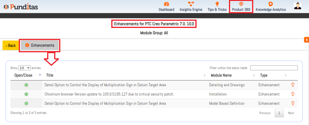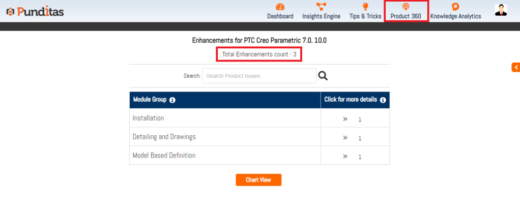 PTC released Creo 7.0.10.0 recently. Punditas AI Advisor now supports this latest version of Creo 7.0.10.0 . Punditas AI allows users to learn more about “How”, What” and “Why” of these enhancements through Product 360 module. The picture below shows the Module groups and the corresponding enhancements added within each group. To try this out, please signup for a FREE trial at Punditas AI