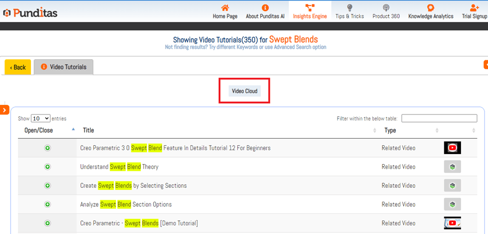 Step 2 :- Video Cloud option is a visual representation of the words associated with the search topic. The font size of a word indicates how often the “word” occurs in the Title, descriptions, and tags within our database, while smaller font size indicates decreased availability of results for that search topic