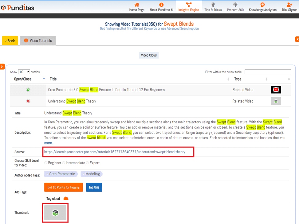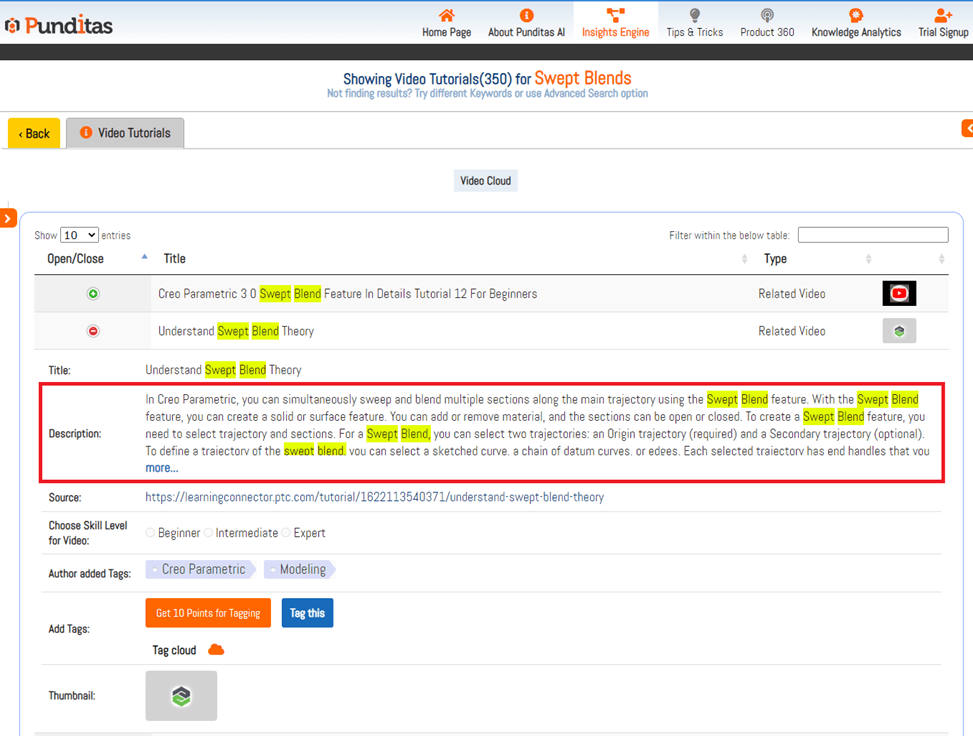 Tutorials and training materials for Creo have been gathered from a variety of sources, including PTC Learning Connector, Vimeo, and YouTube in Punditas AI Advisor. Creo-related old and new tutorials, as well as courses, are all contained under the Video Tutorials node.
