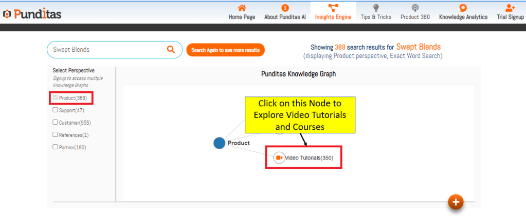 Click on “Back” button to check other nodes of Product perspective for the same searched topic
