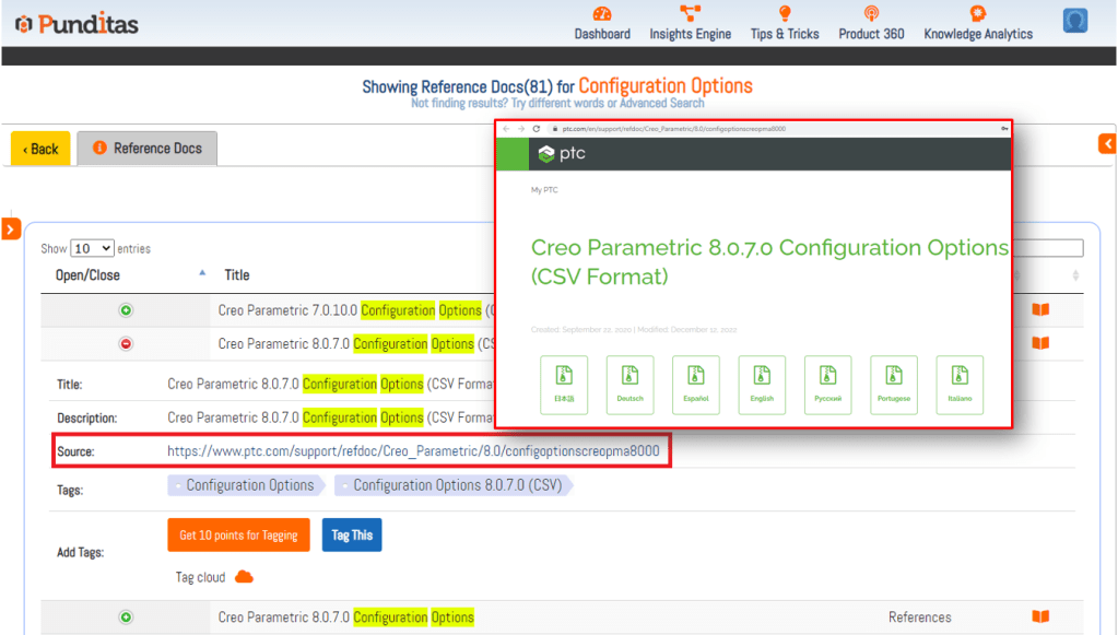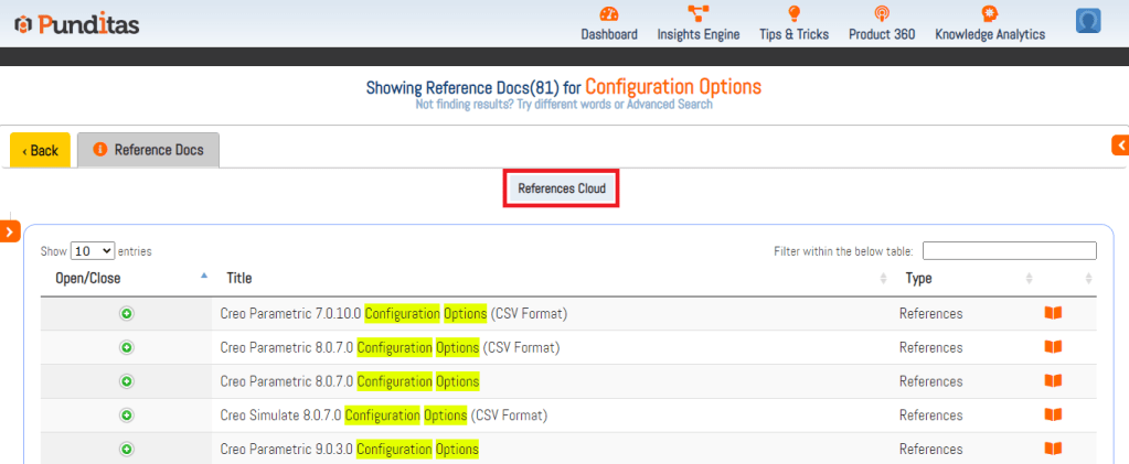 Punditas AI contains all the important documents like Configuration Options, Hardware notes, Installation or Administration guide, Creo platform information, Creo Parametric TOOLKIT guide, Creo Data management instructions, Release Notes etc. in Reference Docs node, Explore Punditas AI search engine and easily find out Documents.
