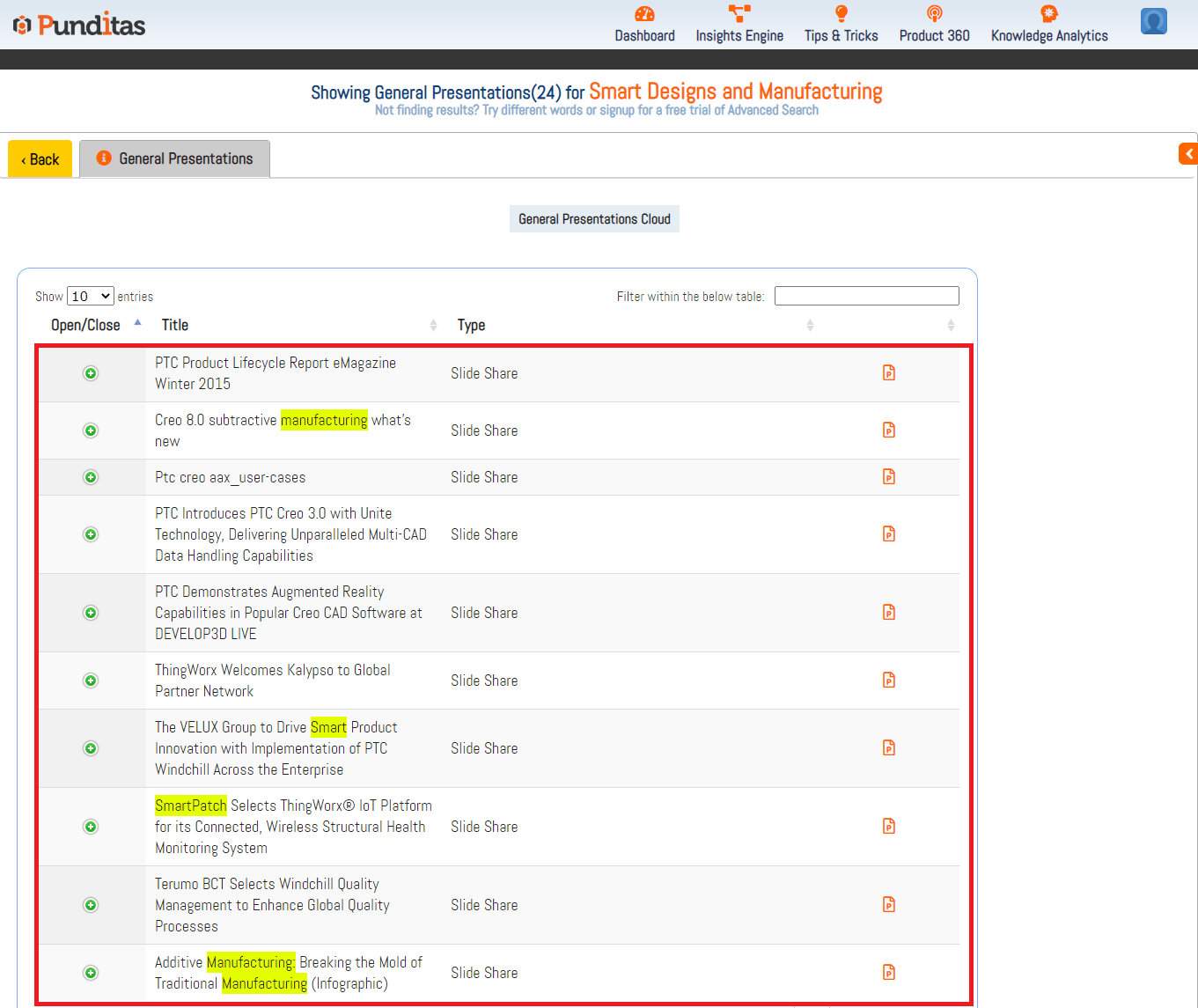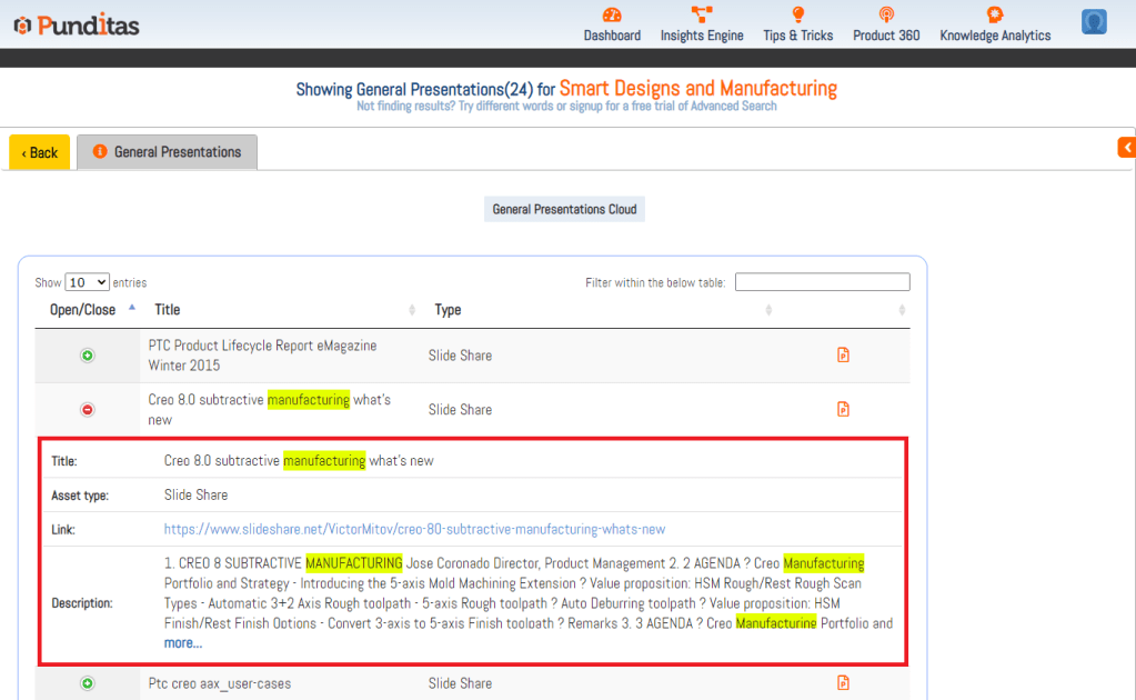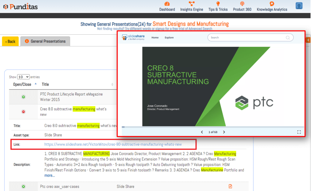 Punditas AI collects all important Presentations related to PTC Creo Parametric and presents them in the General Presentations node depending on the search topic.