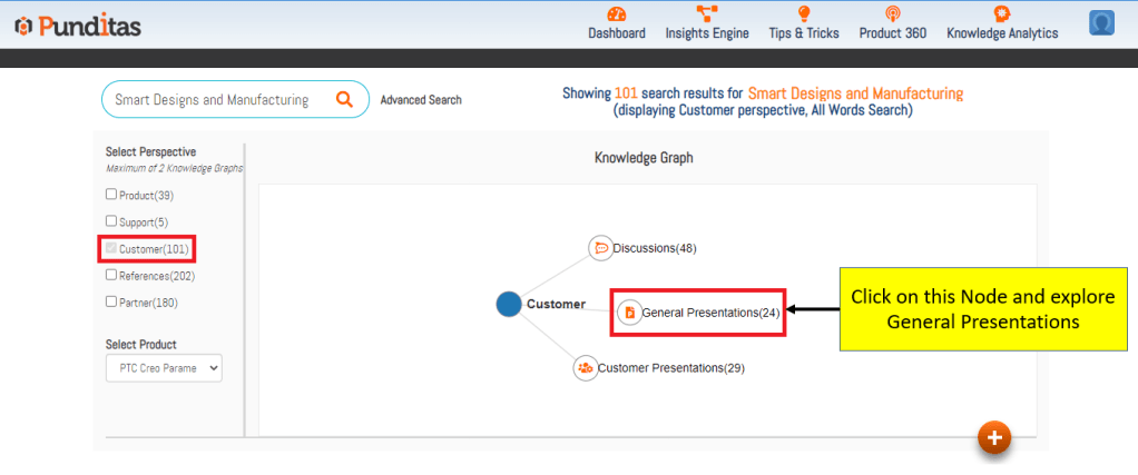 Step 1 :- Search for the Creo topic, select Customer perspective and click on General Presentations node as displayed below in the image