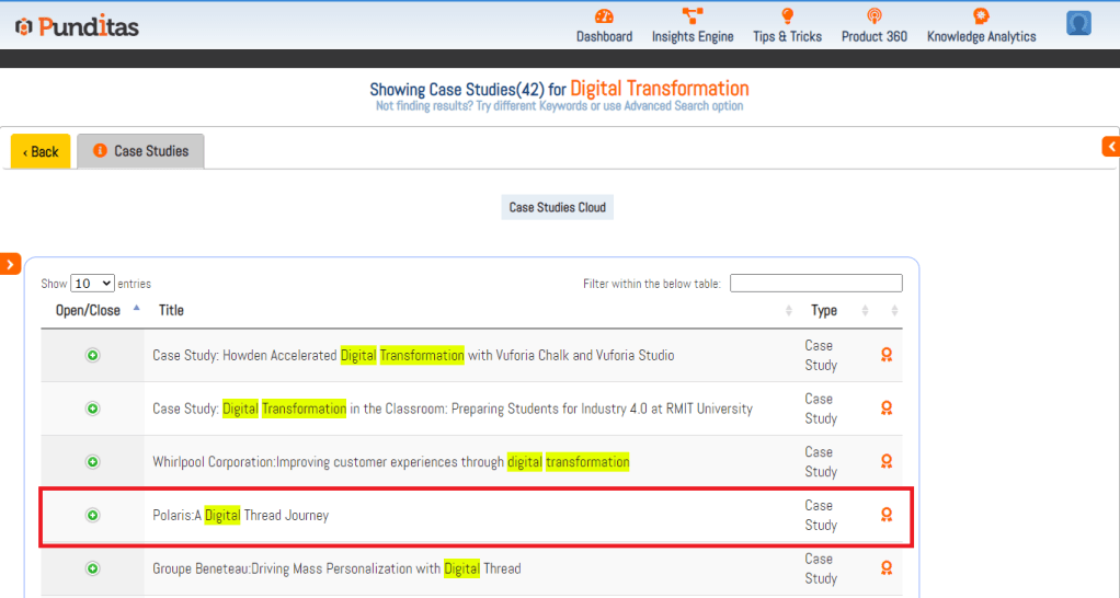 Punditas AI showcase all important Creo related Case Studies in Case Studies node based on given search topic