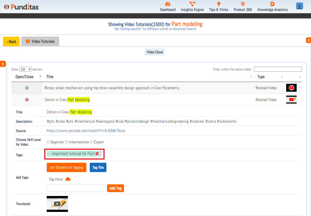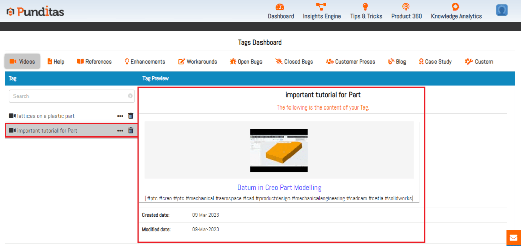 Punditas AI allows you to label your critical data like Videos , Help articles, Enhancements, Workarounds, Bugs, Reference documents, Blogs, Case Studies, Customer Presentations etc. and save Creo information for later use