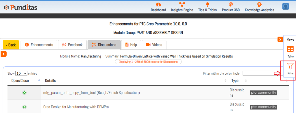 As a CAD designer using PTC Creo Parametric, staying informed about the latest enhancements is crucial to your success. However, with so many community platforms available, it can be overwhelming to find relevant discussions on the specific Creo Parametric modules you’re interested in. That’s where Punditas AI’s Filter feature comes in.