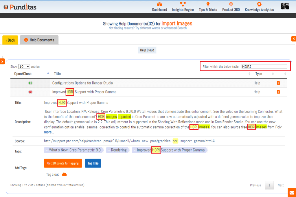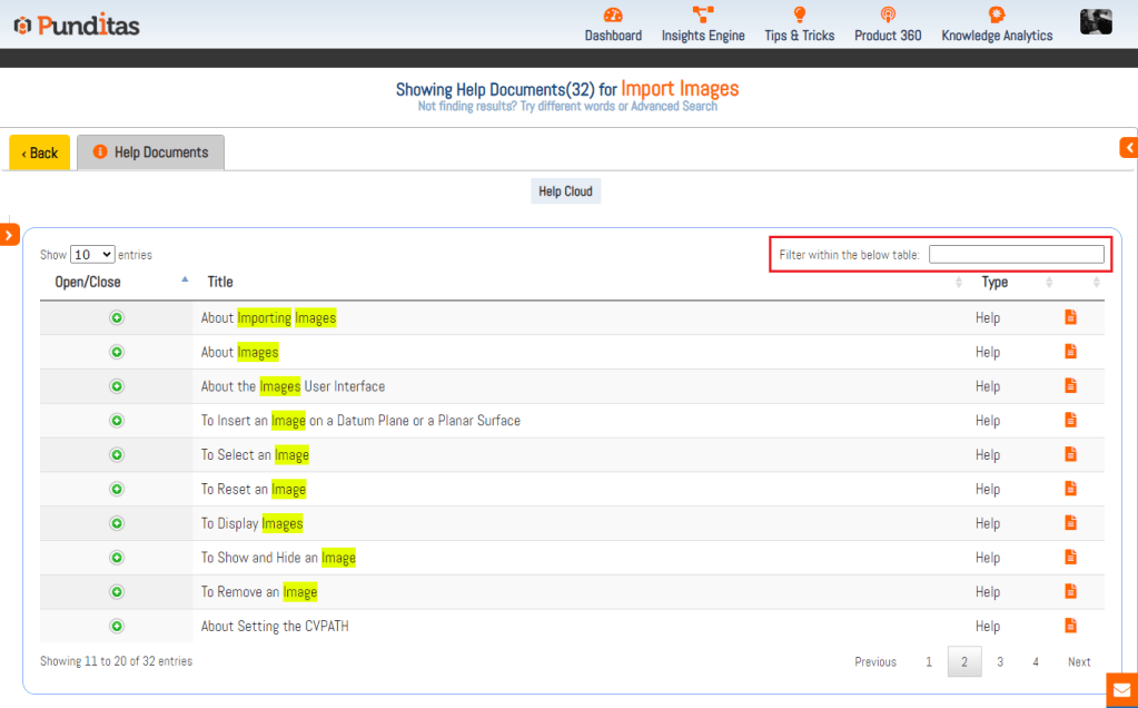 Punditas AI understands the importance of optimizing user efficiency and productivity when it comes to navigating through a vast collection of Help articles. To address this challenge, Punditas AI has introduced a powerful feature called “Filter within the table” within the Help Documents node. With an abundance of Help articles available based on a user’s search word, phrase, or topic, this functionality allows users to refine their search and access more accurate and relevant information quickly.
