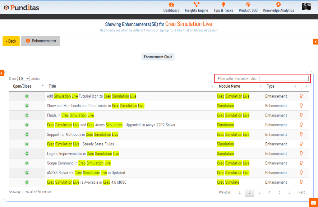 By enabling precise filtering within the table, Punditas AI empowers users to efficiently navigate through the extensive database of Enhancements. This feature not only enhances search accuracy but also allows users to focus on the most relevant results, resulting in a more streamlined and effective learning experience. The “Filter within the table” functionality serves as a valuable tool for users who value time, precision, and the ability to swiftly locate the desired Enhancements amidst a wealth of information.