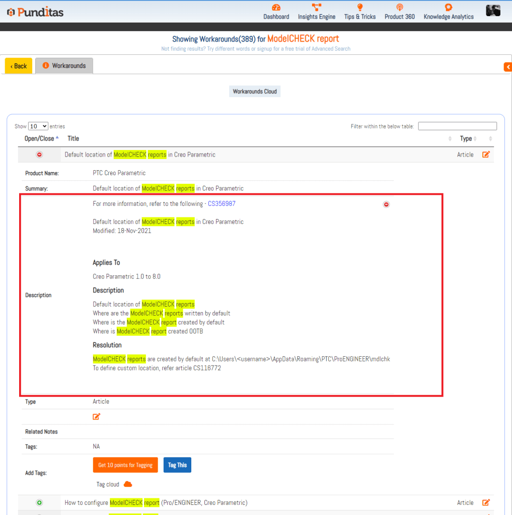 Punditas AI recognizes that the original descriptions crafted by the authors offer unique insights into the content of the Workarounds. By preserving and presenting these authentic descriptions alongside the Workarounds, users gain a comprehensive understanding of the intended purpose and focus of each resource. This rich context empowers users to make well-informed decisions about which Workarounds are most relevant to their needs, streamlining their knowledge exploration process.