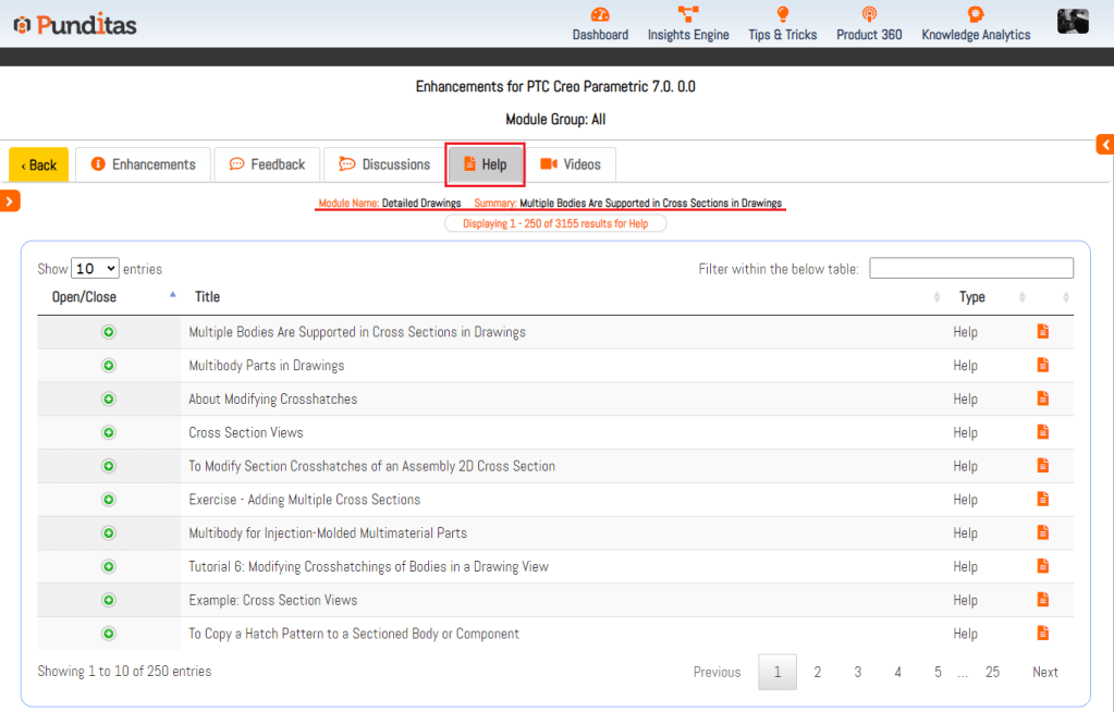 Punditas AI’s capabilities extend well beyond data aggregation and verification. We leverage the power of our Product 360, which includes a Detailed View feature, to deliver highly relevant results. When users expand an enhancement from the Enhancements tab, Product 360 processes this input intelligently. It identifies the most relevant and valuable content from our extensive collection of Help documents and presents these results seamlessly within the “Help” tab. This ensures that users receive information that is not only accurate but also highly pertinent to their needs.