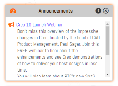 For example, in the case of scheduled downtime for the Creo software, an Admin user can create an announcement containing the relevant details and specify an expiration date. This ensures that the announcement is visible to users only until the downtime event has concluded. Similarly, when there’s an upcoming upgrade for the Creo version, Admin users can promptly add this announcement to the tile, enabling users to stay well-informed about the impending changes.
