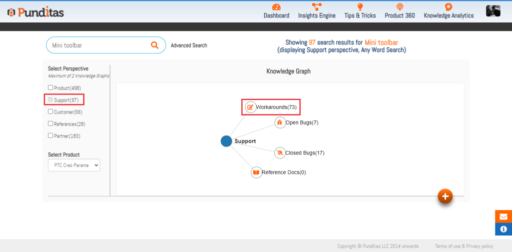 Step 1 :- Search for the Creo topic, select Support perspective and click on Workarounds node as displayed below in the image