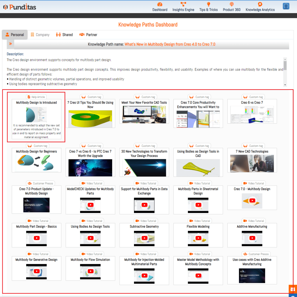 Incorporating thumbnails and summaries into tags and knowledge paths not only simplifies information access but also cultivates interest and curiosity among users. The presence of visually compelling content tends to encourage user engagement and deeper exploration. This, in turn, can contribute to a heightened comprehension of PTC Creo Parametric and its functionalities, positively influencing productivity and efficiency. In essence, Punditas AI’s incorporation of thumbnails and summaries emerges as a transformative feature for individuals requiring access to or sharing of PTC Creo Parametric content.