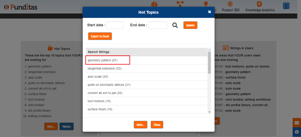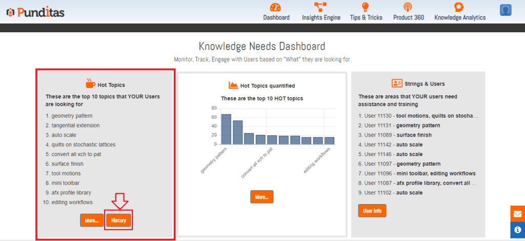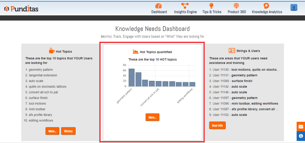 Punditas AI offers the ability to show the top 10 hot topics that your CAD team members have been searching for