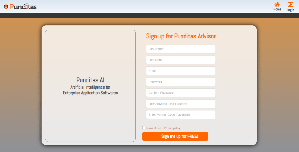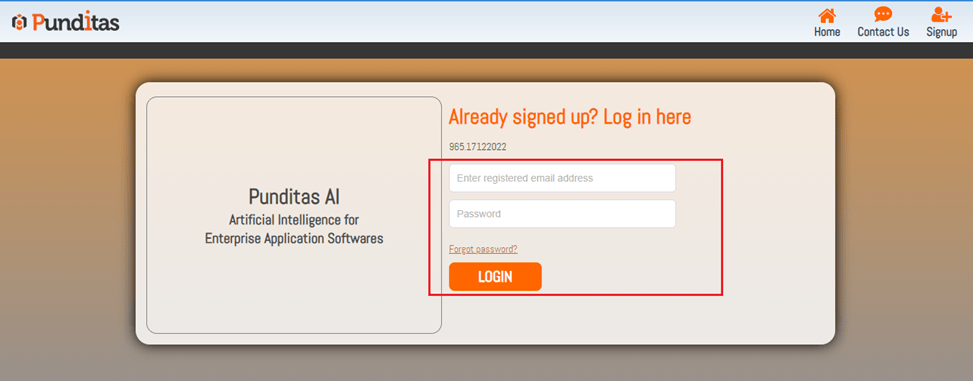 Click on Login button to Explore Punditas AI for Free! Provide Registered email address and password, hit the login button