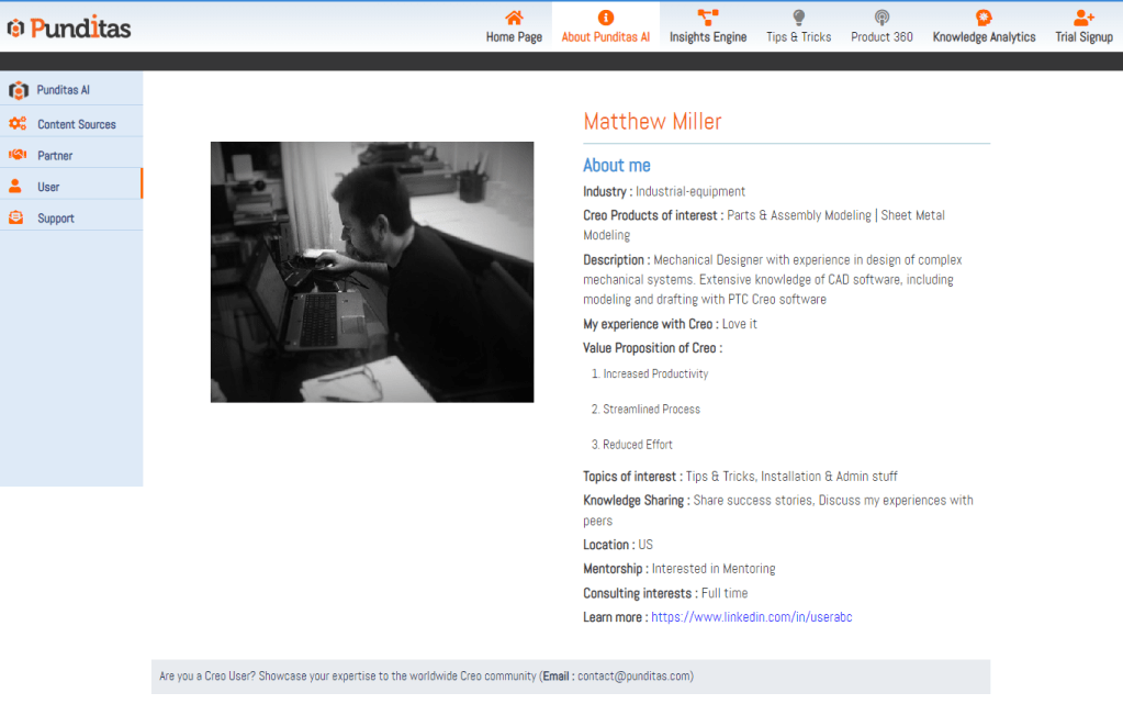 Punditas AI Advisor is supported in the embedded browser in Creo as well as all other browsers, Showcase your Profile in Punditas AI and get attention of all the PTC Creo Users around the world