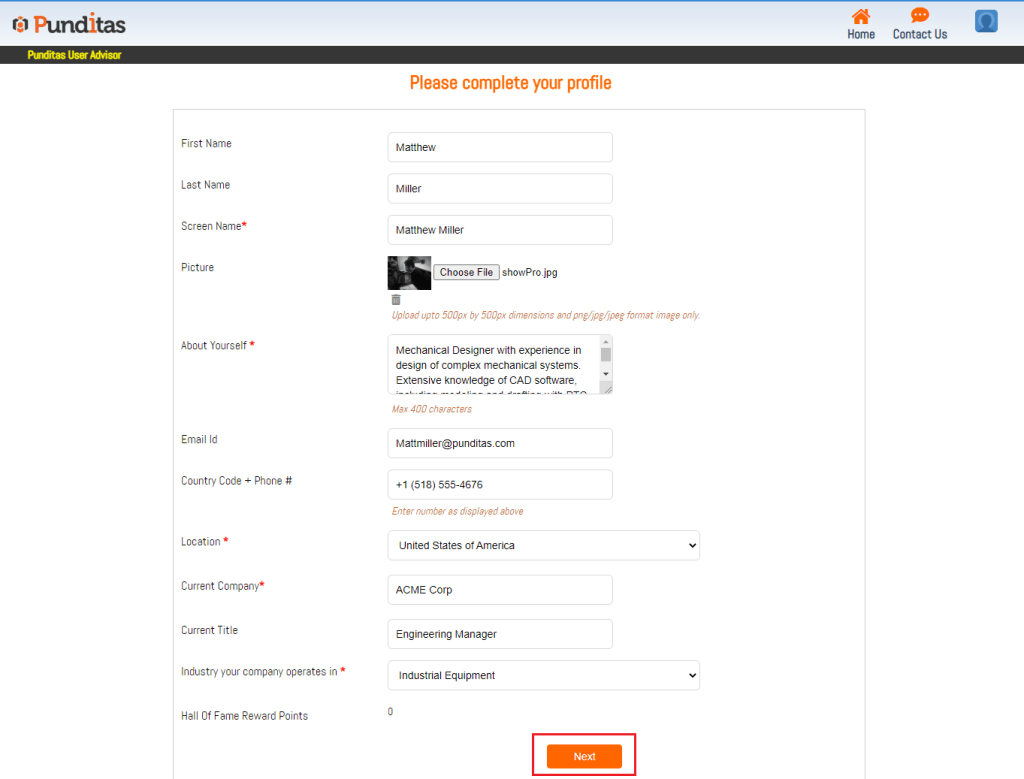 Step 3 :- Provide basic information about yourself where you can add Picture, Professional background, Current Company, Current title etc. and click on Next button as displayed below in the Image