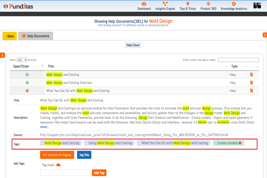 Tags play a pivotal role in organizing and enhancing searchability. Punditas AI’s Help Documents node features a Tags field showcasing tags added by original creators. Additionally, users can add their own tags, facilitating easier navigation and discovery of Help articles based on relevant topics.