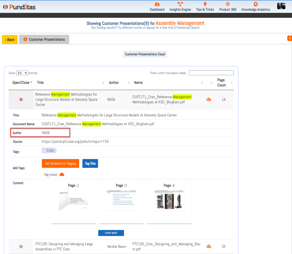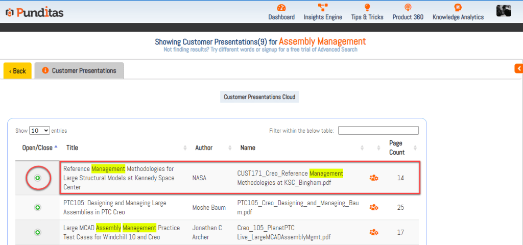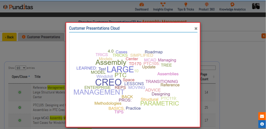 Each Presentation in the Customer Presentation node contains a Page Count field, indicating the total number of pages available in that particular Presentation. Punditas AI systematically displays pages containing searched keywords, phrases, or topics, eliminating manual search efforts and providing users with relevant information efficiently.