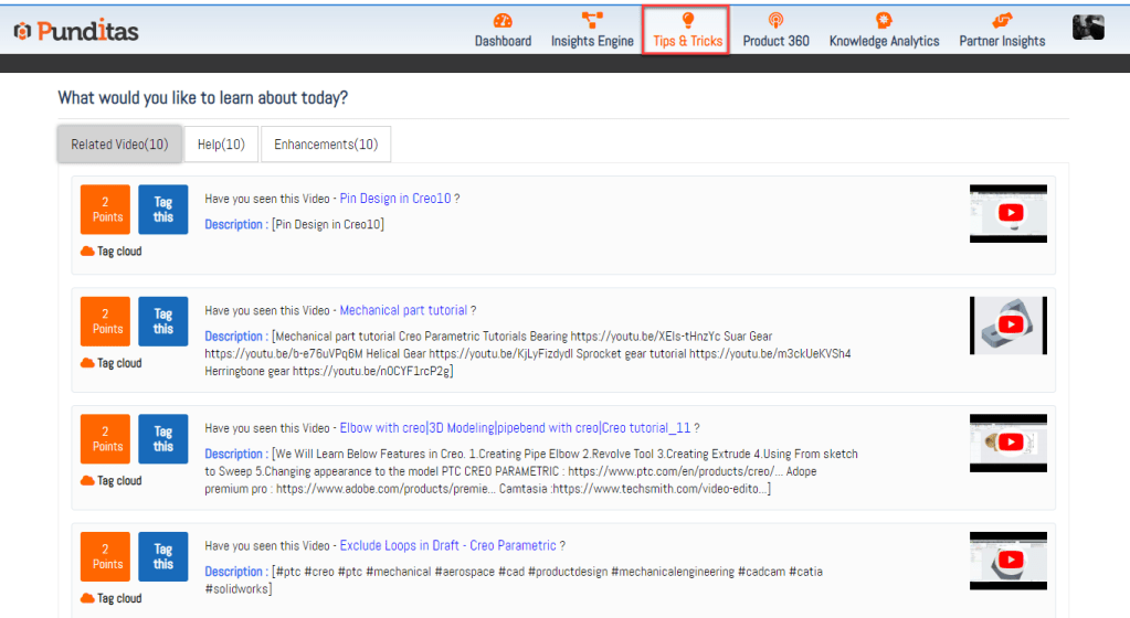 In the fast-paced world of technology, staying informed and getting the most out of your software is essential. Punditas AI’s Tips & Tricks module is designed to elevate your experience by providing targeted insights and guidance tailored to your selected product, such as Creo Parametric, ThingWorx, SolidWorks, Onshape, or Windchill. Here’s how each tab can benefit you: