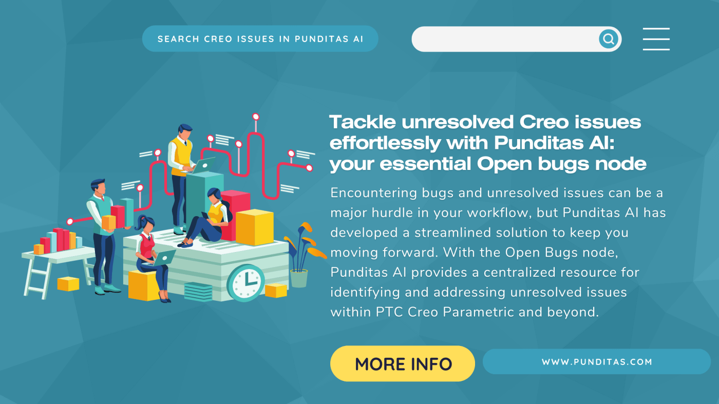 Punditas AI’s Open Bugs node is more than a troubleshooting tool; it’s a vital resource for anyone working with PTC Creo Parametric. By compiling detailed information on unresolved issues and offering an intuitive search experience, Punditas AI empowers users to tackle challenges head-on and maintain a seamless workflow.