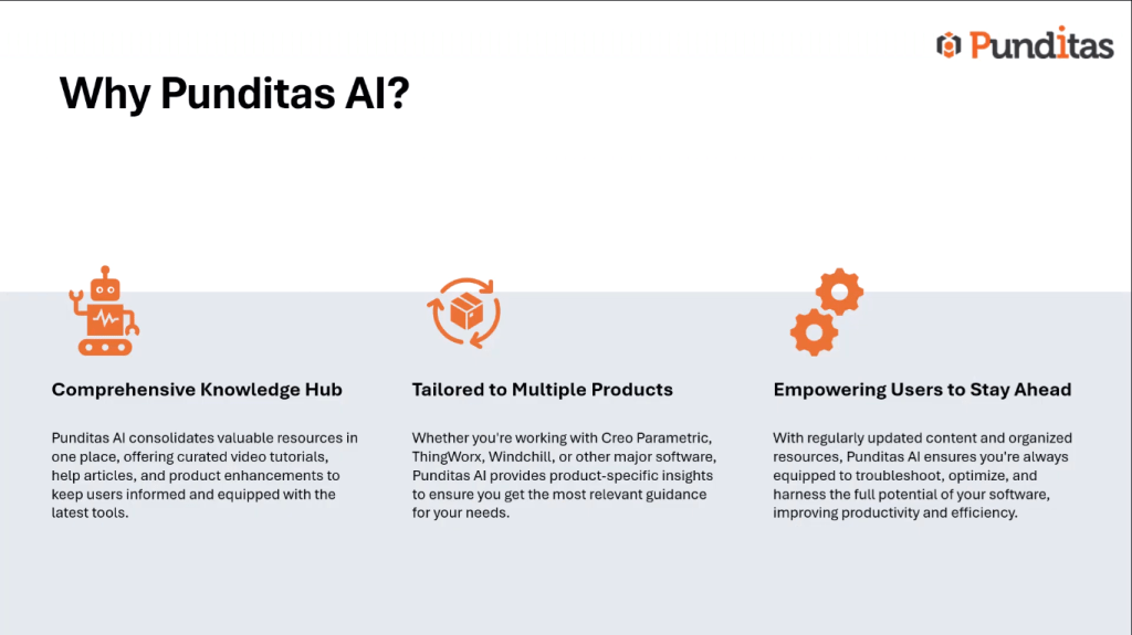 Using various CAD software like Creo Parametric, Windchill, and SolidWorks can be a real challenge. Searching for solutions often leads to wasted time and frustration. How can you streamline your workflow and enhance your experience across these platforms? Enter the Punditas AI Tips & Tricks module—a central hub for relevant tutorials, help articles, and updates. This module is designed to tackle these challenges head-on.