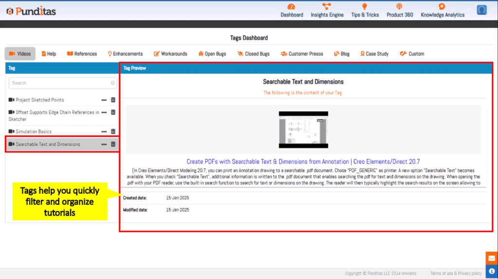 This feature streamlines knowledge management, allowing users to organize and retrieve vital information quickly. Whether you’re referencing a tutorial video, looking for a case study, or reviewing product documentation, the tagging system ensures you stay organized and efficient.