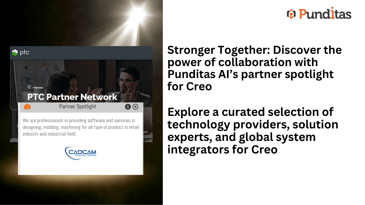 Whether you’re exploring PTC Creo Parametric, Windchill, ThingWorx, Onshape, or other enterprise tools, the Partner Spotlight ensures you’re introduced to the most relevant and capable partners within that ecosystem.