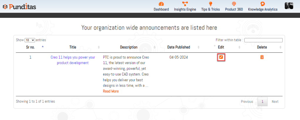 With just three easy steps, Admin users can modify announcements and instantly reflect the latest changes on the Punditas AI dashboard. No complex procedures, no unnecessary steps—just quick and efficient editing.