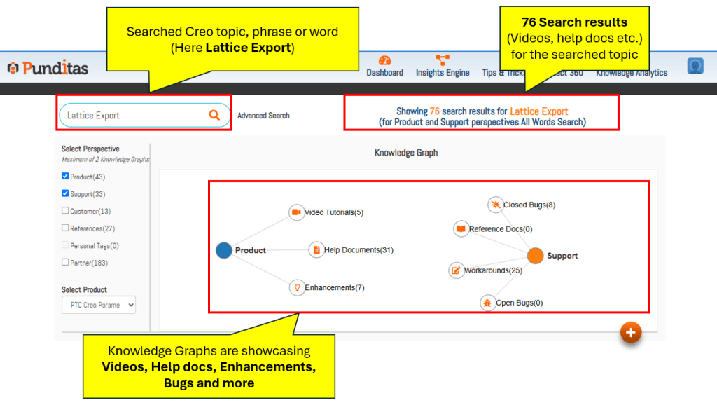 The moment you work with lattice features or search for anything related to STL/3MF export, Punditas activates a live Knowledge Graph, surfacing the most relevant insights—videos, tutorials, workarounds, known issues, best practices, and more.