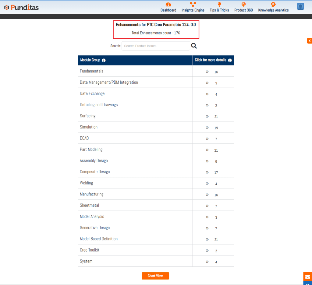 The Detailed View option in Punditas AI allows Creo Users to explore each enhancement in greater detail. The picture below shows the details of every enhancement in Creo 12.4.0.0. Not only is the list of enhancements displayed but also the associated Video tutorials, Online Help documentation (provided by PTC) as well as community discussions around this topic