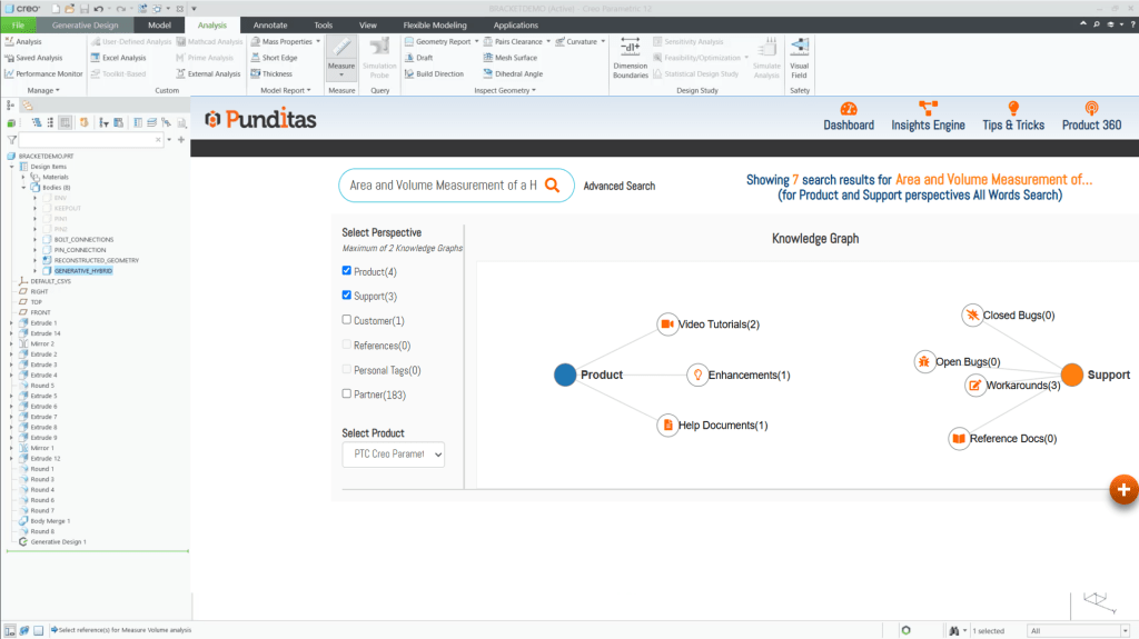 Punditas AI Advisor provides real-time guidance as you work in the Creo environment. Information on “how to use” a feature in Creo or best practices for working with Creo are presented within context, removing the need to guess or search for such information. Punditas AI driven content helps you leverage Creo to create your designs faster and with confidence.