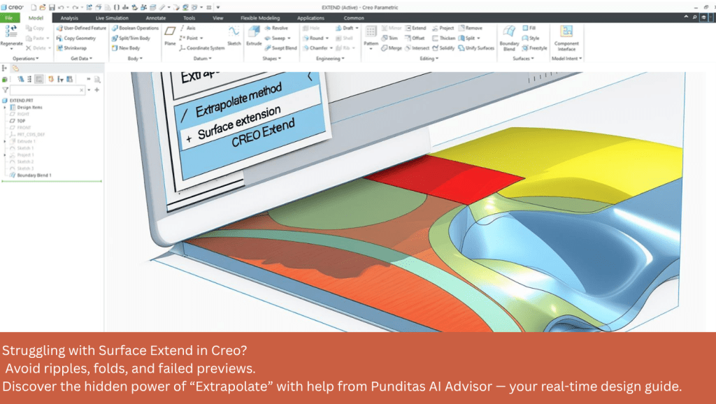 And in Creo, a powerful enhancement has been quietly added to the Extend feature: the “Extrapolate” method. But chances are, you’ve either missed it, or don’t quite know when to use it. That’s where Punditas AI Advisor changes the game.