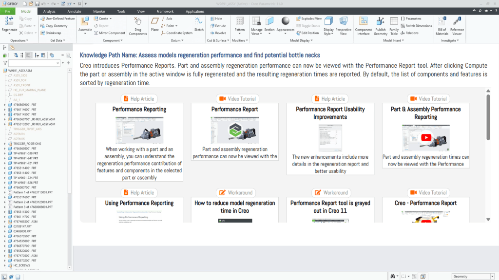 In a fast-paced design environment, performance isn’t just a goal—it’s a necessity. As Creo evolves with powerful tools like Performance Reports for analyzing part and assembly regeneration time, the opportunity to fine-tune model efficiency has never been better. But here’s the catch: even the most powerful tool is only as useful as the user’s ability to access, understand, and apply it in real time.