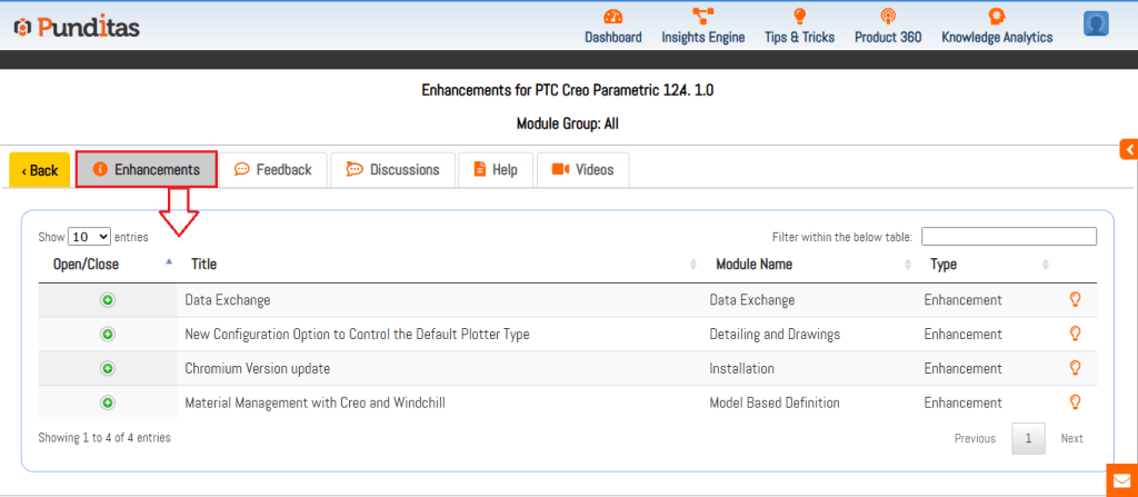 PTC released Creo 12.4.1.0 recently. Punditas AI Advisor now supports this latest version of Creo 12.4.1.0. Punditas AI allows users to learn more about “How”, What” and “Why” of these enhancements through Product 360 module. The picture below shows the Module groups and the corresponding enhancements added within each group. To try this out, please signup for a FREE trial at Punditas AI
